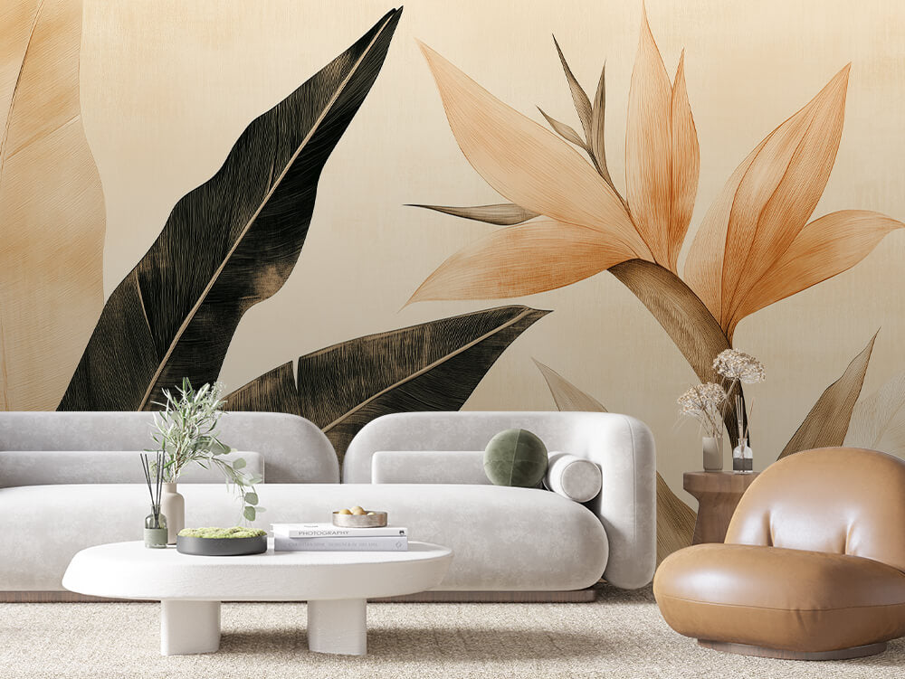 Friss, természetes hangulat. A növény- és levélmintás tapéták nyugalmat és harmóniát hoznak a térbe.